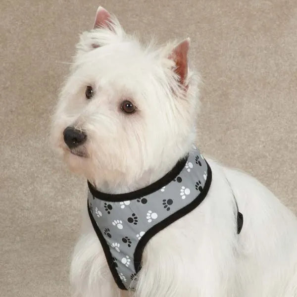 Increase pet’s visibility and keep them safe during nighttime walks with our Casual Canine® Reflective Pawprint Dog Harness.